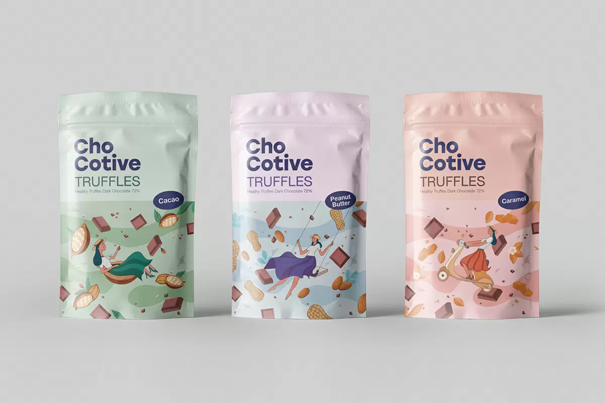 Chootive是一家位于沙特阿拉伯的巧克力家居企业。在其新阶段,经历了新的市场定位,客户需要一种新的巧克力包装设计,以帮助他吸引理想的目标受众。我被要求改造他们的包装,创造一种强调享受巧克力的快乐时刻的外观。
