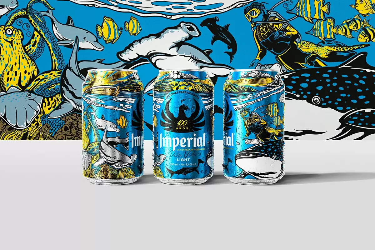 品牌名称“El Gordo”以醒目的字体占据了舞台中心。排版不仅仅是功能性的;它是墨西哥音乐和舞蹈符号的复杂插图的画布。圆球和音符围绕着字母舞动,加强了这种饮料与伴随而来的庆祝音乐之间的联系。充满活力的调色板-以蓝色,黄色,绿色和橙色为特色-与深灰色色调形成鲜明对比,创造出动态的视觉体验。
