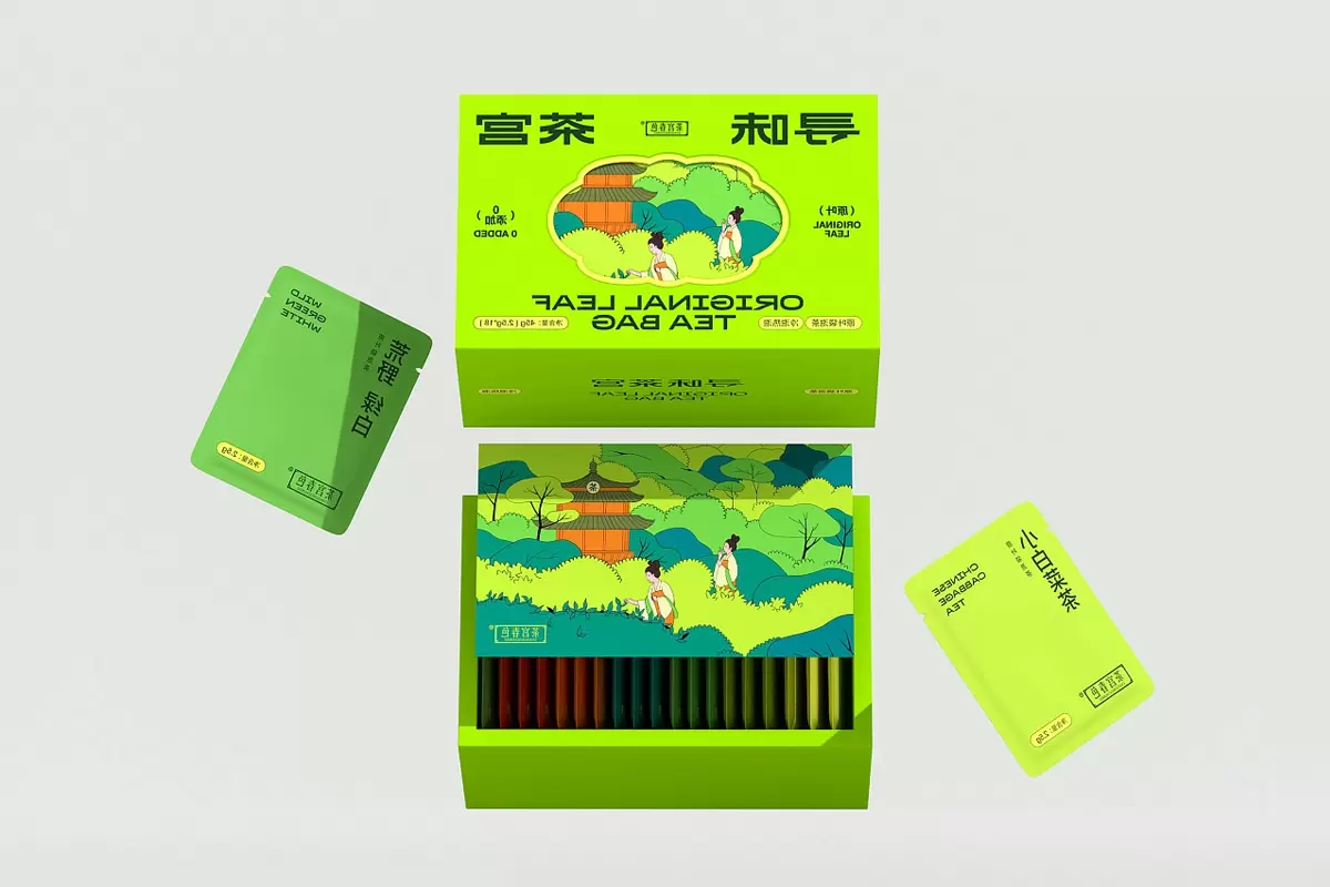 「茶宫春色」是位于福建厦门的一家主打「以茶为本」的新式茶饮品牌,以年轻一代的都市白领为主要消费群体,开发年轻化的茶饮产品,此次包装设计是为了加强产品与年轻消费者的关联性、便携性。