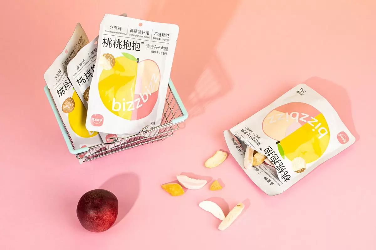 抱抱系列是哔滋哔滋新品果干,是一款主打营养健康的轻零食。在每一代“c”里,都有两种不同口味的水果相遇、拥抱,给大家带来全面应用,激发出全新的美味体验。“抱抱”的包装设计轻盈、鲜亮,给产品带来清新的气息。根据产品有两种口味水果的特色,在包装上采用了清新亮眼的图形搭配,把健康、新鲜的感受,用具象的视觉表现了出来。