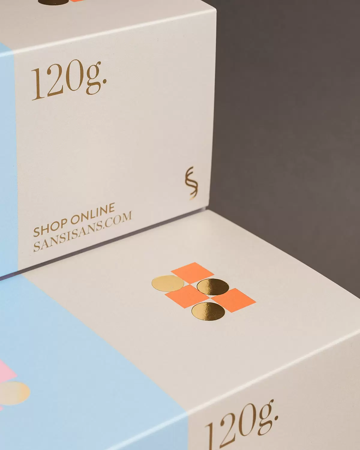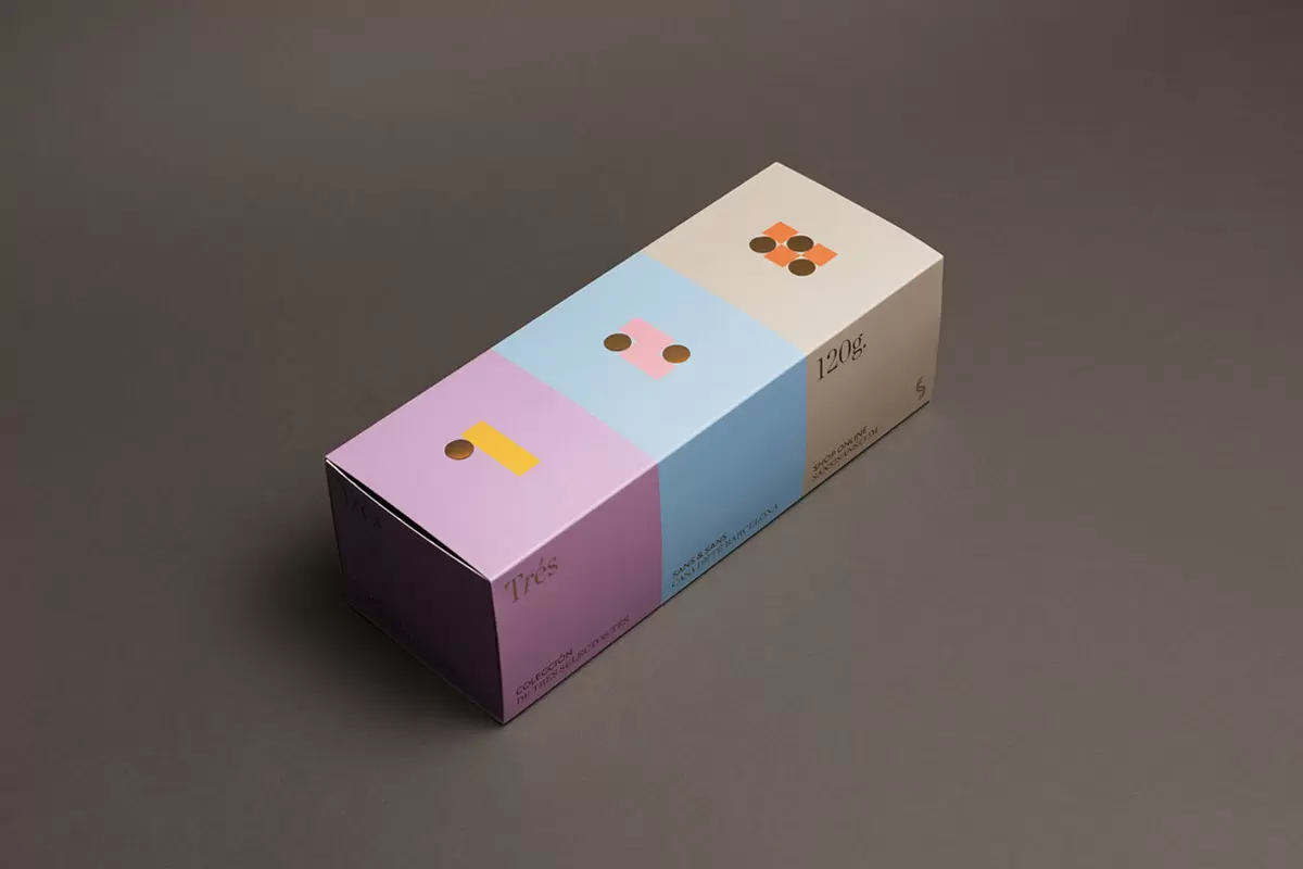 Sans & Sans 推出了 Tres(三杯茶)系列,茶罐是一个内容可变的容器,客户可以选择自己喜欢的茶。包装采用了同样的抽象简约的风格,选择不同的色彩,既体现了茶叶的纯粹美味,也传达了品牌选择自由的理念。