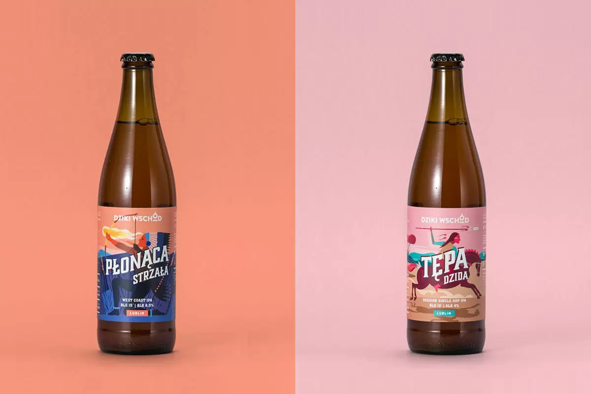Dziki Wschód是一款精酿啤酒,所有啤酒的名称都是印第安人的部落名称,体现浓浓的美洲土著风情,因此每个风味的啤酒包装都设计了土著人部落的插图,画风时尚。