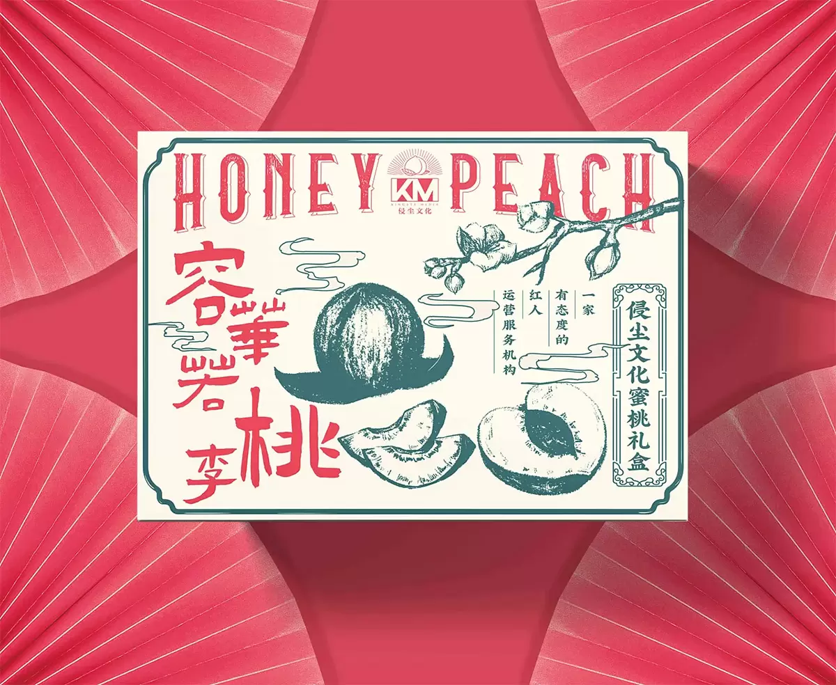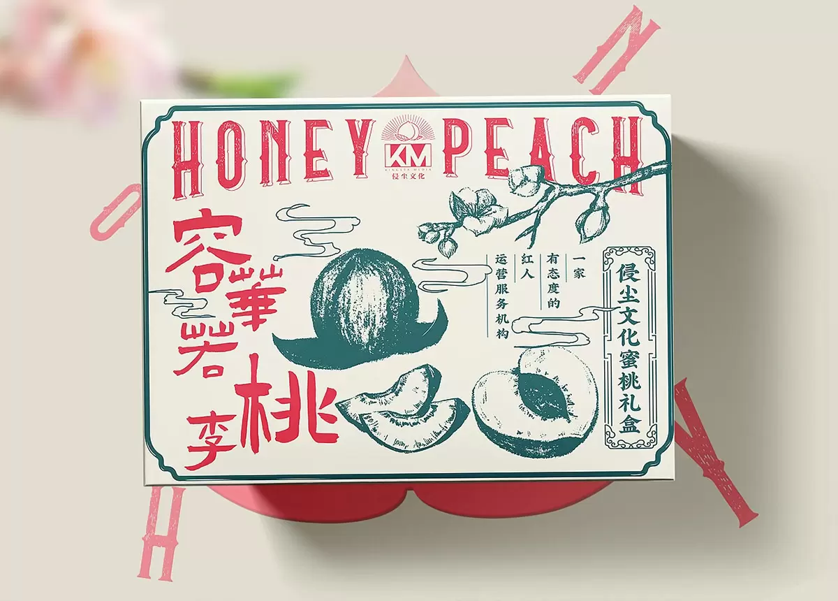 宁波侵尘文化传媒有限公司,在网红经济,网红电商产业,线上产品代言包装推广,线下网红活动外宣等方面实现一套完整的经营流程。 此次和侵尘文化合作的的水蜜桃礼盒也是主要用于公司内部送礼用了,结合了一些传统的文化进行设计。