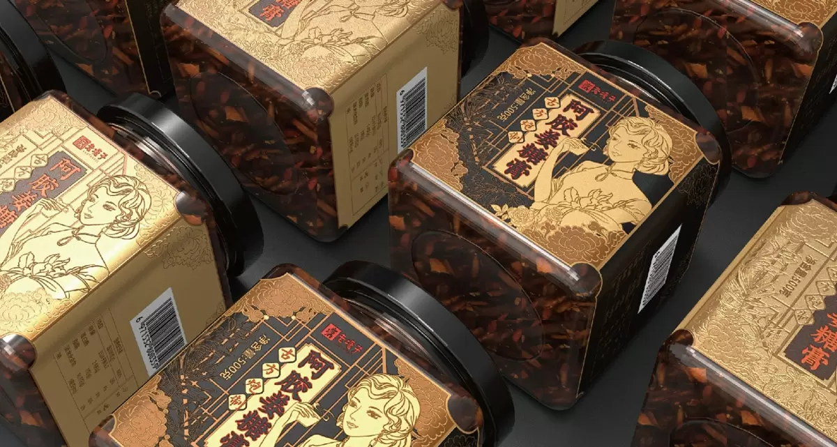 老塘子品牌始终以“发现 · 传承 · 自然‘真’味”为理念,以期让“老塘子”成为“健康自然美味”的代名词。老塘子用纯朴与本真,定义美食,让人们在品味美食时,更多的感受到美味和心灵最真诚的交流和愉悦体验。整体采用暗黑色视觉设计,标贴插画以线描的形式刻画了身着旗袍的女子正在享用糖膏的场景,暗示产品的适用人群以及功效。标贴插画上还加入了一些传统中式纹样,通过不同色彩的点缀,丰富画面视觉,突出东方底蕴。