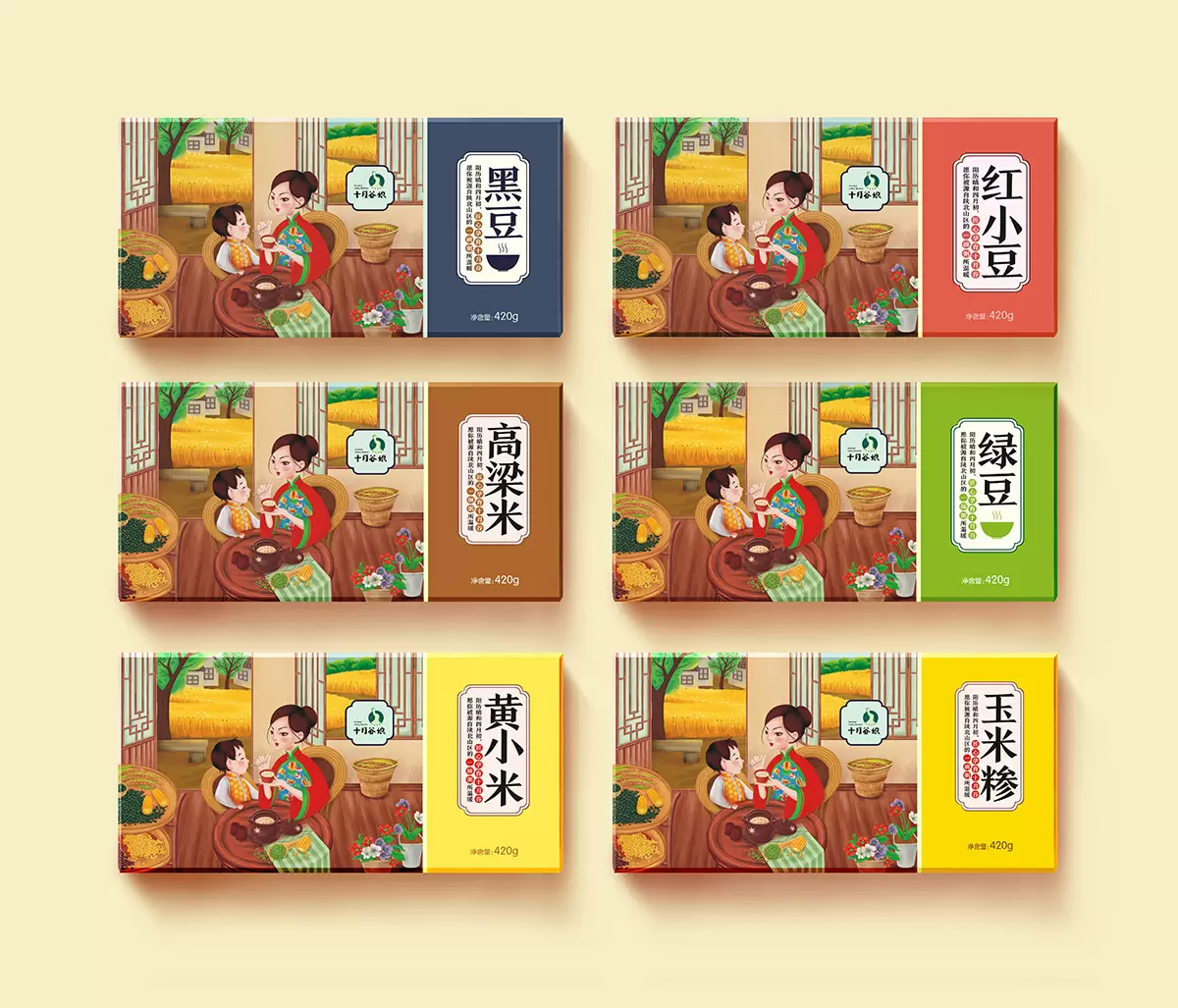 品牌定位以女性为诉求点 从包装画面中的母亲喂食孩子的场景展示出“友爱、温情、呵护”的包装风格。友爱:秉承与消费者成为朋友的信念,以友好的态度,关心消费者的核心需求,传播健康传播爱;温情:十月谷娘给人温馨温暖的情感,是可以依靠的品牌顾问,是收获健康与心灵温暖之所;呵护:呵护健康,以无微不至的关怀,如亲人一般带来浓浓的爱。将十月谷娘的品牌文化向消费者展示,让人欣慰的是此款包装上市后获得广大消费者的喜爱。