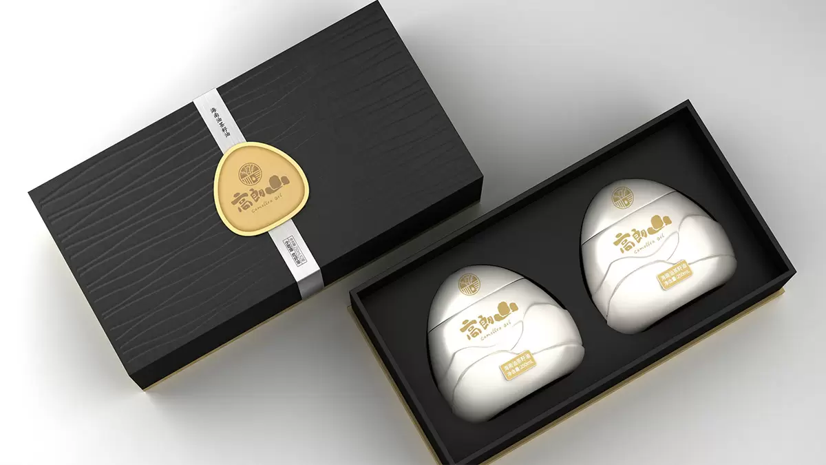 由于产品定位是高端保健油,物理属性属于珍贵稀缺油品,因此,我们将用茶油文化、精美图案,材料、质感融入包装设计,以凸显茶油的珍稀、尊贵、与众不同,在作为节日送礼、商务伴手礼馈赠亲友时,拿出来是有排面、有内容的精致,高朗山海南油菜籽油瓶型设计创意来源:考虑到瓶型需要申请外观专利,因此其外观必须有造型出彩、新颖、特点显著,方能顺利通过审核,海浪冲刷而成,大自然之杰作,瓶型外轮廓创意灵感来自于,海南海浪积年累月冲刷形成的天然石头,浑然天成,天工雕琢,寓意凝聚天地之精华,与茶油树沐浴阳光、雨露、沃土滋养生机,异曲同工,以展现茶油纯天然、健康营养的属性、悠扬高远的山脉,大自然的律动之美,瓶身纹祥取自悠扬高远的山脉,俊朗恢弘,于品牌高朗山呼应,其形态优雅自然、润滑流畅,尽显大自然的律动之美,白色搭配金色,给人干净、舒适以及品质感,优雅流畅的山脉,让人感受到大自然的律动。将产品瓶型外伦廓与品牌LOGO相结合,用金属铭牌的方式呈现,轻奢,质感,抽象的山脉机理,激凸工艺,地调奢华、韵律优雅,创意底座设计,赋予产品厚重感,文化感,底部金卡纸,图案烫金,烘托礼品感。