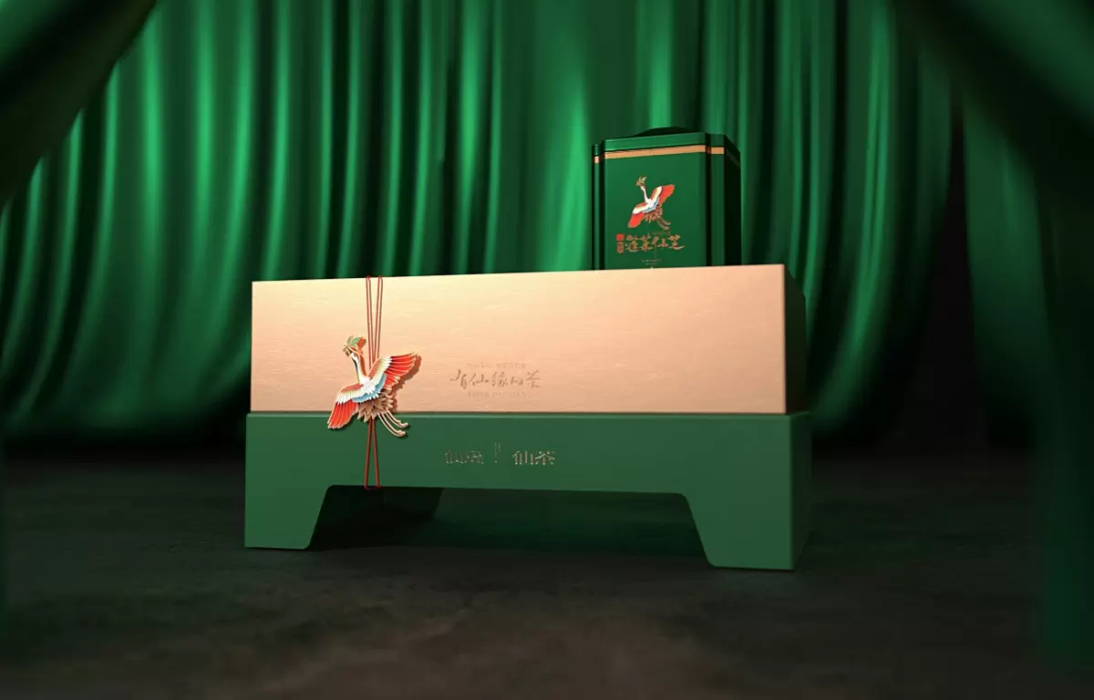 仙岛,仙茶,默默积蓄,与世无争。有底蕴才会有仙味,但“仙”又总是高高在上的。在时代语境下,我们如何把对“仙”的敬意,调和成对“仙”的喜爱?对中国人来说,茶可以很日常,是“柴米油盐酱醋茶”;也可以很雅致,是“琴棋书画诗酒茶”。这两者之间,并不需要有明显的界线。对于这款好茶,我们既要显化它“仙岛仙茶”的文化基因,也要让每个人都能够沾得到这“仙气”,所以我们需要借助符号的力量。符号是人们约定俗成来指称一定对象的标志物。一方面它是意义的载体,是精神外化的显现;另一方面它具有能被普遍感知的客观形式。在民间传说中,鹤是神仙的坐骑,在日常生活中,它是隐士的朋友,闲云野鹤无不惬意。它立于世间,姿态清雅,“晴空一鹤排云上”,颇具仙风道骨。贵为“一品鸟”,够仙。然而,看似隐入深处,与世无争,但“鹤鸣于九皋,声闻于天。”一旦它仰天鸣叫,远在世间的人们都能听到。就像生活于林中的贤者,隐居于世。君子如鹤,敢为天下鸣,无人不晓。鹤,将出世做人、入世做事的态度完美诠释。这也是对“蓬莱仙芝”的完美诠释:多年沉寂,一鸣惊人。