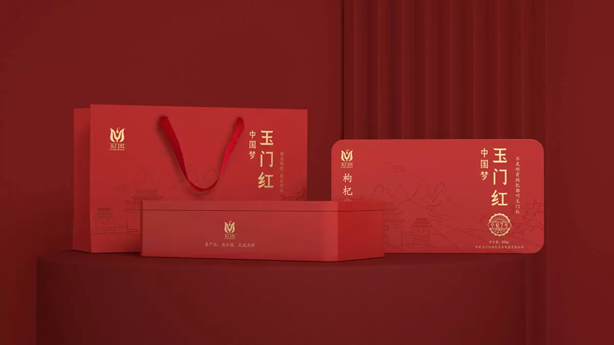 插图取材玉门关,祁连山,以及枸杞种植园,寓意祁连山雪水灌溉,玉门地处东经:96.15度,——98.30度,北纬:39.40度,——41.00度,日照充分。