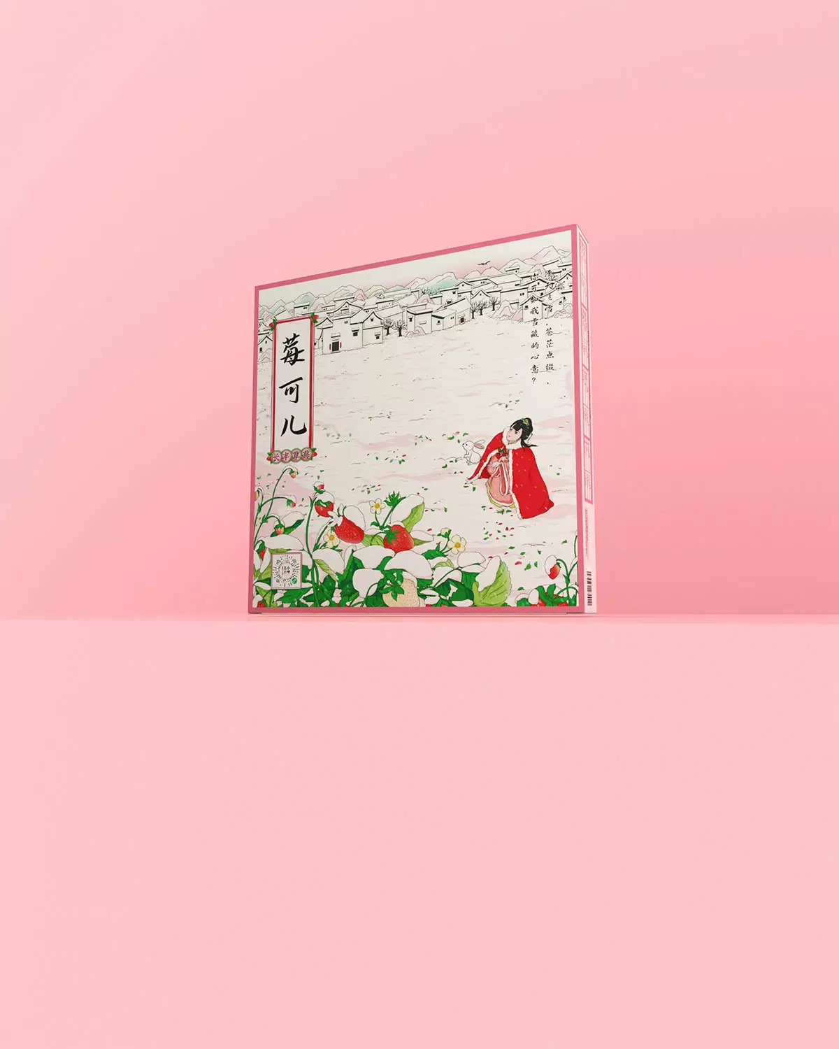 踏雪寻莓,延续前面的插画风,从女主角“莓可儿”的角度出发,在漫天雪地等待爱人归来的。整体构图偏俯视,和前面一款逍遥离空中归来形成呼应。同时远景展现的是主人翁的故里安徽,画面呈现的是“徽州古建筑”。色调以白色为主,透漏着红色草莓,简洁且有留白的想象感。
