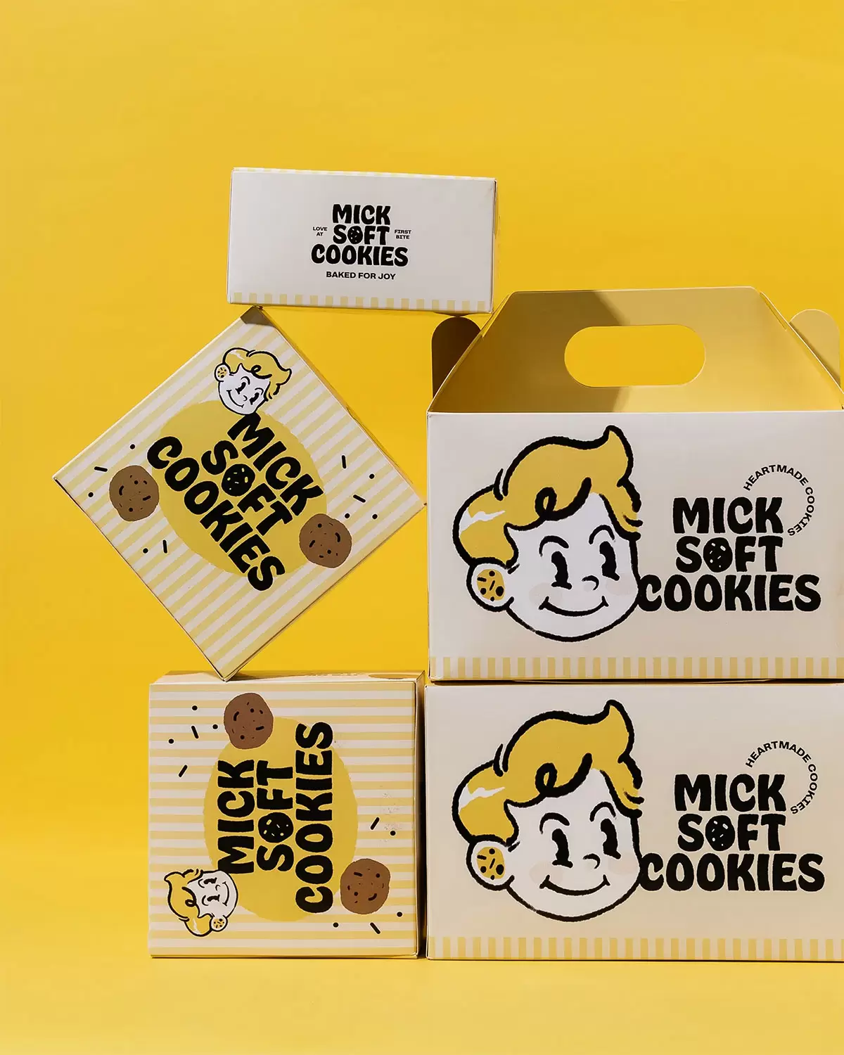 我们为米克软饼干设计了包装,这是一种用鲜艳的黄色包裹的令人愉快的美食,旨在唤起温暖和友好。每个盒子都以我们欢快的吉祥物米克先生为特色,突出了发自内心的故事,将情感与每一口食物联系起来。米克软饼干旨在让每一次购买都成为一次快乐的体验,充满爱和美味的时刻。