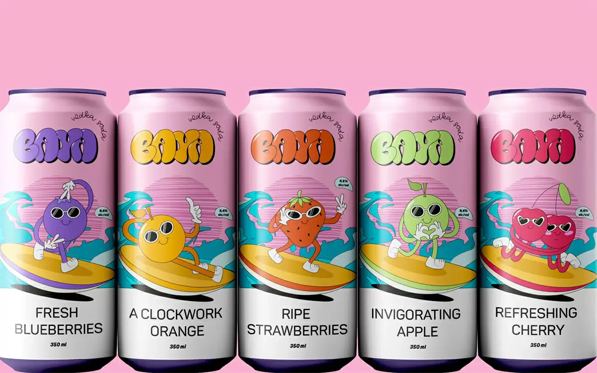 在这个项目中,我为包装设计开发了一个字体标志和可识别的字符。以浆果和水果的形式漂浮在海浪上的明亮英雄,让这种饮料立刻与清爽的东西联系在一起。